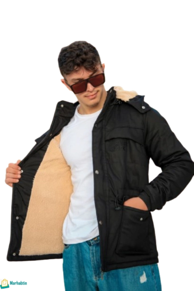 • البطانة الداخلية: هي سر الدفء الاستثنائي في هذا الجاكيت. مبطنة بالكامل بفرو ثقيل وكثيف، وتغطي البطانة حتى داخل الكبشونة، لضمان أقصى درجات الدفء والعزل الحراري للرأس والجسم بالكامل.