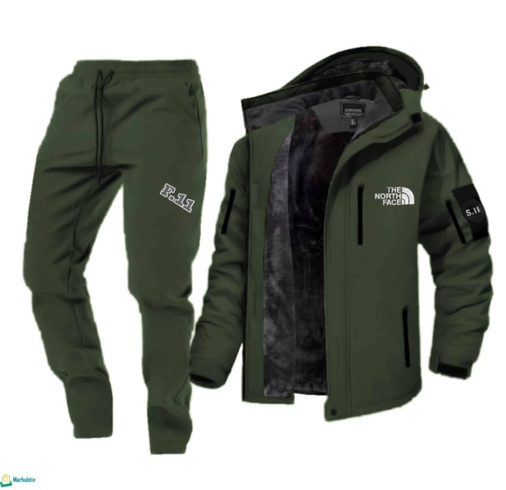 الطقم مؤلف من قطعتين (جاكيت وبنطال)، وكلاهما مصنوع من قماش الفليس المستورد من الصين. الميزة الأهم تكمن في الجاكيت (الجزء العلوي)، الذي يأتي مبطناً بالكامل بطبقة من الفرو الكثيف والناعم، مما يضمن أعلى مستويات العزل الحراري. لذلك، هذا الطقم يجمع بين الخفة والتدفئة القصوى. التصميم مزود بـ طبعات جلد وطبعات تزانسفير تضفي عليه مظهراً رياضياً شبابياً، والبنطال مريح مع “زم” في الأسفل ليمنع تسرب البرد ويضمن مظهراً أنيقاً.