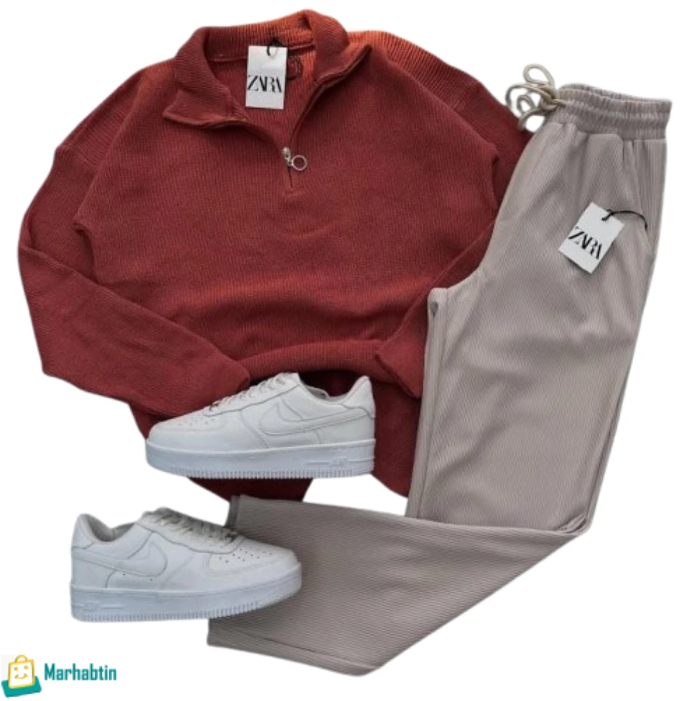 | التكوين | بلوزة تريكو + بنطال فلو (ريب مسحب) |